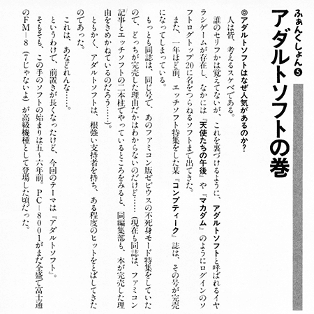 堀井雄二御大は「F」という名前でエ□ゲーを紹介してたな。 |