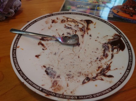 あー、スイーツって食べ終わった皿がえっらい汚いよなぁ。 |